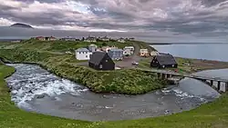 Hofsós befindet sich an der Ostseite der Skagafjörður. Der Fluss Hófsá mündet hier ins Meer. Etwa 7 km nördlich liegt der See Höfðavatn.