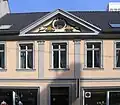 - Nr. 51: Das Gebäude wurde am 5. April 1983 unter Denkmalschutz[20] gestellt. Das Anfang des 19. Jahrhunderts erbaute Gebäude zeichnet sich durch seine Jugendstilfassade aus. Die um 1900 nach Entwürfen von Fritz Niebel gestaltete Fassade zeigt Reliefs in Stuckdekor, z. B. Pflanzen, Masken und Eulen: „Die Fassade ist in vier Achsen gegliedert […] Die oberen Geschosse zeichnen sich durch eine betont vertikale Teilung aus. Pflanzliche Ornamente streben zur Traufe empor, die stark geschweift ausgebildet ist. Die Gliederung fasst die Fensterachsen paarweise zusammen. Die Mittelachse eines jeden Paares wird durch eine Fliesenverblendung und an der Traufe durch eine Eule, die auf einer Maske sitzt, betont.“[21]