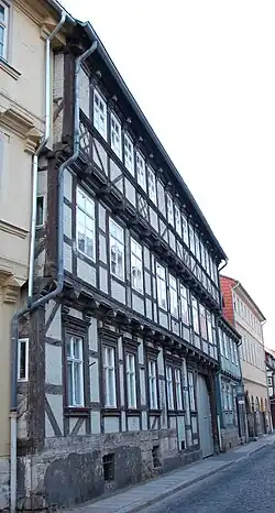 - ↑ Hans-Hartmut Schauer, Das städtebauliche Denkmal Quedlinburg und seine Fachwerkbauten, Verlag für Bauwesen Berlin 1990, ISBN 3-345-00233-7, Seite 70