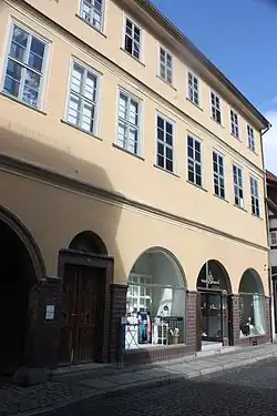 - ↑ Hans-Hartmut Schauer, Quedlinburg, Fachwerkstatt/Weltkulturerbe, Verlag Bauwesen Berlin 1999, ISBN 3-345-00676-6, Seite 45.