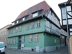 Das zweigeschossige Fachwerkhaus gehört zum UNESCO-Weltkulturerbe und ist im Quedlinburger Denkmalverzeichnis als Kaufmannshof eingetragen. Es entstand in der Zeit um 1580. Aus dieser Zeit stammen auch am Nordgiebel befindliche Schnitzereien, darunter Fächerrosetten[1]. Geprägt wird das Haus von einem hohen, steilen Walmdach, dessen Dachwerk noch aus der Bauzeit stammt.