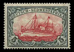 Auf den Briefmarken der deutschen Kolonien war die Hohenzollern abgebildet. (Briefmarke Deutsch-Südwestafrika von 1906)