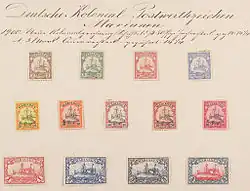 Marianen-Briefmarken der Serie Hohenzollern verschiedener Wertigkeit (1900).