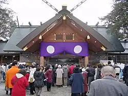 An Neujahr besuchen mehrere hunderttausend bis 1 Million Menschen trotz durchschnittlicher Niedrigtemperaturen von −6 °C den Schrein zum Hatsumōde.