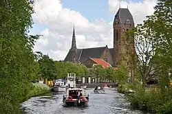 In Gouda mündet die Gouwe, deren Wasserspiegel heutzutage zumeist unter dem der Hollandse Ijssel liegt. Die Mündung besteht aus mehreren künstlichen Wasserwegen: An der Mündung des östlichen Stadtgrabens Fluwelensingel liegt ein Schöpfwerk. Die alte Hafenschleuse (beim Alten Zollhaus/Oude Tolhuis) an der Mündung der namentlichen Gouwe dient nur noch als Siel. Am westlichen Rand der Altstadt führt die Mallegatsluis in den Turfsingel genannten westlichen Stadtgraben mit Museumshafen. Etwa einen Kilometer weiter mündet der Julianakanaal mit zwei Armen; der östliche Stroomkanaal entwässert durch ein Schöpfwerk, der westliche Gouwekanaal mündet über die Julianaschleuse in den Voorhaven.