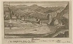 Zwar existierte bereits während der Herrschaft der Römer eine Brücke über die Limmat, doch lag diese fast einen Kilometer flussabwärts bei den Thermen der Siedlung Aquae Helveticae (im Bereich der heutigen Schiefen Brücke). Die erste Erwähnung einer Brücke in der Klus erfolgte im Jahr 1242. Dieses erste Bauwerk ersetzte eine wahrscheinlich seit dem 11. Jahrhundert bestehende Fähre und war zugleich Zollstation. Hier kreuzten sich die Strassen nach Basel, Schaffhausen, Zürich und Bern. Im Laufe der Jahrhunderte wurde die Brücke mindestens viermal durch Überschwemmungen, Eisgang oder kriegerische Ereignisse zerstört. Bis 1766, als Hans Ulrich Grubenmann beim Kloster Wettingen eine weitere Brücke errichtete, war die Badener Holzbrücke der einzige Übergang zwischen Zürich und der Limmatmündung bei Gebenstorf.