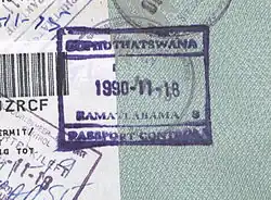 Stempel der Passkontrolle des Homelands Bophuthatswana