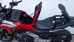 Vor dem Fahrersitz, wo sich üblicherweise der Kraftstofftank befindet, hat die NC 750 X ein ca. 23 Liter fassendes Staufach, in das ein Integralhelm passt. Der 14,1 Liter fassende Kraftstofftank liegt unter dem Fahrersitz, der Tankdeckel ist unter dem hochklappbaren Soziussitz. Dadurch liegt der Schwerpunkt niedriger.