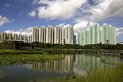 - ↑ Tin Shui Wai (chinesisch 天水圍 / 天水围, Pinyin Tiānshuǐwéi, Jyutping Tin1seoi2wai4), genauer Tin Shui Wai New Town (天水圍新市鎮 / 天水围新市镇, Tiānshuǐwéi Xīnshìzhèn, Jyutping Tin1seoi2wai4 San1si5zan3 – „Planstadt Tin Shui Wai“), einer der sogenannten Hongkonger New Towns (Planstadt) nahe der Yuen Long-Region in den New Territories im nördlich gelegenen Region der Sonderverwaltungszone Hongkong.