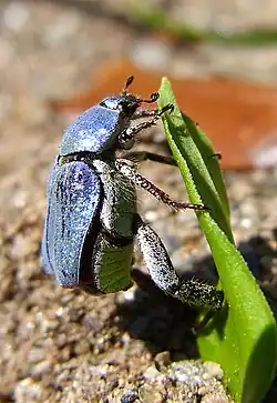 Hoplia coerulea ist ein Käfer aus der Familie Rutelidae, die zu den Blatthornkäfern im weiteren Sinn gehört.[1] Die Gattung Hoplia ist in Europa mit 39 Arten vertreten.[2] Die durch ihre irisierende Färbung auffallende Art coerulea wird nur in Südwesteuropa gefunden. Die auf Mallorca gefundenen Tiere wurden als Unterart Hoplia coerulea cosimii beschrieben,[3] diese Auffassung hat sich jedoch nicht durchgesetzt.[4][1]