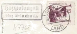 Poststücke, die in die jeweilige Brieflade vor Ort eingeworfen worden waren, wurden vor der Weiterleitung vom Postboten mit einem Uhrradstempel, in Hoppetenzell mit der 6., versehen.[7]