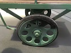 - zweiachsiger Pritschenwagen mit Drehschemellenkung, auf die Hinterräder wirkender Seilzugbremse und auswechselbarer Zugvorrichtung für Hand- oder Motorantrieb