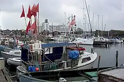 ![]() Der Hafen mit dem angrenzenden Siedlungsgebiet Hornbæks | |||||