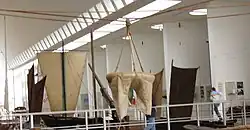 Die Hosenboje besteht aus einem Rettungsring mit angenähter Hose. Wie eine Seilbahn wird dieser an einem Seil hin und her gefahren.