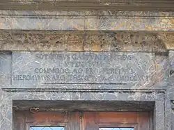Das Gebäude ist ein viergeschoßiger und siebenachsiger Bau über einem Rechtecksgrundriss. Das Portal ist mit Umrandungen und Pilastern verziert. Darüber befindet sich eine Inschriftentafel von 1794.