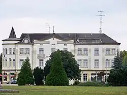 Das Hotel steht als Baudenkmal unter Denkmalschutz und ist im Denkmalverzeichnis mit der Nummer 094 17638 erfasst.[12] Am ehesten ist das Bauwerk in der heutigen Gestalt der Moderne zuzuordnen und innerhalb dieser am ehesten zur Heimatschutzarchitektur. Es bietet heute elf Einzelzimmer und 14 Doppelzimmer sowie einen Tagungsraum.[13] Östlich des Hotels befand sich eine Fontäne in einem runden Wasserbecken, die später durch einen Springbrunnen mit vier Brunnenschalen und einer Stele im rechteckigen Becken ersetzt wurde, welcher ebenfalls nicht erhalten ist. Auch südlich des Hotels befanden sich zeitweise Wasserspiele.