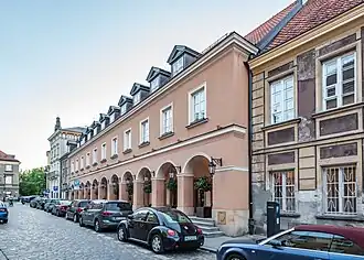 Das Hotel mit der Adresse ulica Kościelna 12 liegt rund 40 Meter ostwärts der „Hauptstraße“ der Neustadt, der ulica Freta. Die Entfernung zur Warschauer Weichselböschung – die „St. Mariä Heimsuchung“-Kirche (polnisch: Kościół Nawiedzenia NMP) passierend – beträgt nur etwa 100 Meter. Das dreigeschossige Hotel grenzt mit seiner Rückseite an die weitläufige Anlage des Sapieha-Palastes, der heute eine Gehörlosenschule (polnisch: Specjalny Ośrodek Szkolno-Wychowawczy dla Dzieci Słabosłyszących nr 15 im. Ottona Lipkowskiego) beherbergt. Das Nachbargebäude in ostwärtiger Richtung ist das Chodkiewicz-Palais.