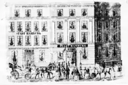 Um 1850 verfügte das damals von G. T. Pflüg geführte Hotel über 71 Gästezimmer und warb mit seinen Bade- und Duschgelegenheiten, einem Stall, der verschließbaren Remise und dem Garten hinter dem Haus.[4] Im Jahre 1901 wurde in einem Bericht zur 40-jährigen Wiederkehr des Überganges des Hotels in den Besitz der Familie Toepfer[5] in den Vaterstädtischen Blättern, der illustrierten Beilage der Lübeckischen Anzeigen, die Geschichte des Hauses unter der Nutzung interner und externer Quellen[6] beleuchtet. Die einstige Hamburger Herberge war zu jenem Zeitpunkt der älteste Gasthof Lübecks.[7]
