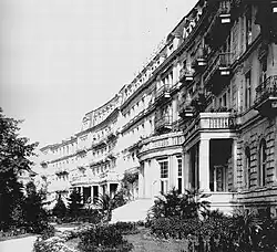 Zum Hotel gehörte von Beginn an ein elisabethstraßenseitig gelegenes Nebengebäude. Es handelte sich dabei um den früheren Schnedizenihof, den der Hotelgründer Louis Jung erworben hatte und der zu Beginn der 1880er Jahre in eine Pension im Schweizer Stil umgebaut wurde. Danach wurde das Haus als Dependance bezeichnet. Es verfügte über rund 50 Zimmer und war für Gäste vorgesehen, die sich länger im Hotel aufhalten wollten. Zur kulinarischen Versorgung der Gäste wurde von der Hotelküche im Hauptgebäude zur Dependance ein 64 Meter langer und 80 × 50 Zentimeter großer Tunnel errichtet, durch den ein mit einem 1-PS-Motor betriebener Speisewagen geschickt wurde.[5] Die Dependance hatte den Krieg zwar unbeschadet überstanden, musste aber 1962 ebenfalls dem Wohnbau Platz machen.