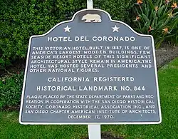 Das Hotel del Coronado wurde 1888 von James Reid erbaut und war seinerzeit das größte Urlaubshotel der Welt. Als erstes Hotel überhaupt wurde es schon beim Bau mit elektrischem Licht ausgestattet. Die Elektroleitungen wurden aber vorsichtshalber in Gasrohren verlegt, damit man, falls die neuartige Elektrizität nicht funktionieren würde, sofort auf Gas umstellen konnte. Nach der Fertigstellung wurde die Installation von Thomas Edison höchstpersönlich überprüft. 1904 kam er noch einmal ins del Coronado, um den ersten im Freien aufgestellten elektrisch beleuchteten Weihnachtsbaum vor dem Hotel zu begutachten. Im Zweiten Weltkrieg wurde das Haus von Piloten der nahe gelegenen Navy Base genutzt. Am 14. Oktober 1971 wurde das Hotel als Baudenkmal in das National Register of Historic Places aufgenommen.[2]