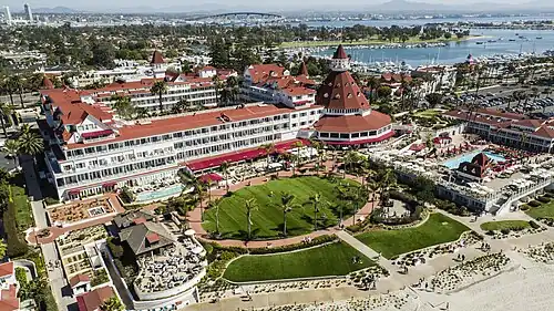 Das Hotel del Coronado, von den Einheimischen auch kurz The Del genannt, ist ein berühmtes altes Luxushotel am westlichen Strand der Halbinsel Coronado im US-Bundesstaat Kalifornien, die an der Bucht von San Diego liegt. Es ist eines der wenigen erhalten gebliebenen Exemplare eines hölzernen viktorianischen Strandhotels. Es ist das älteste und zugleich größte Holzgebäude in Kalifornien. Am 5. Mai 1977 wurde das zuvor bereits unter Denkmalschutz stehende Hotel als National Historic Landmark anerkannt.[1] Von USA Today wurde es in die Top 10 der Urlaubshotels der Welt aufgenommen.
