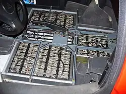 - ↑ Solar- und Elektromobil Nachrichten: Hotzenblitz mit Lithium-Polymer Batterien (Seite nicht mehr abrufbar, festgestellt im Januar 2024. Suche in Webarchiven) Artikel zum Umbauprojekt der Firmen Kruspan Engineering und MDW-Temperatursensorik GmbH.