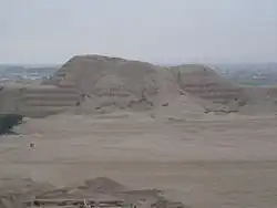 Gegenüber der Sonnenpyramide liegt die Huaca de la Luna, die Mondpyramide.