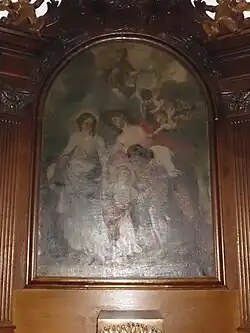 Man betritt die Kapelle durch ein seitlich vom Haupteingang gelegenes neobarockes Portal, auf dessen Supraporte der Heilige Nepomuk steht. Gegenüber dem Eingang befindet sich eine Empore für die freiherrliche Familie, die von dort aus am Gottesdienst teilnahm. Über einen seitlich der Tür angebrachten Spiegel konnten sie die Messe verfolgen. Der Kapellenraum ist sonst schlicht gehalten: Die Kuppel ruht auf vier Ecksäulen mit ionischen Schneckenkonvoluten. Der schlichte Altar zeigt ein Bild von der Auffindung Jesu im Tempel. In den beiden Buntglasseitenfenstern sind die Namenspatrone der Erbauer, Karl Borromäus und Kaiserin Adelheid, dargestellt.