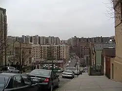 In den Jahren nach dem Zweiten Weltkrieg wurde das Viertel „Frankfurt-on-the-Hudson“ genannt, da sich hier sehr viele deutsche und österreichische Juden niedergelassen hatten und nun einen hohen Anteil an der Wohnbevölkerung stellten.[27] Darüber hinaus stammte eine unverhältnismäßig große Anzahl der hier lebenden Deutschen aus Frankfurt am Main.[22] Kein anderes Viertel der Stadt hatte so viele deutsch-jüdische Einwohner, die hier ihren eigenen deutschen Kosmos in den 1930er Jahren erschufen.