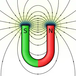 Als Hufeisenmagnet bezeichnet man einen Magneten, der ungefähr die Form eines Hufeisens hat. Den Hufeisenmagneten zeichnet insbesondere das stark konzentrierte Magnetfeld zwischen seinen Schenkeln aus. Abseits der beiden Pole fällt das Magnetfeld schnell ab. Ein Hufeisenmagnet ist im Prinzip ein gebogener Stabmagnet.