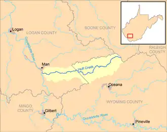 Huff Creek ist ein 34 km langer Nebenfluss des Guyandotte River[3] im Südwesten des US-Bundesstaates West Virginia. Über den Guyandotte River und den Ohio River gehört er zum Einzugsgebiet des Mississippi River und entwässert ein Gebiet mit einer Größe von 130 km2[4] in einem ländlichen Gebiet des Allegheny-Plateaus, das nicht vergletschert war.