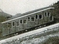 Die vier von der Grazer Waggonfabrik gebauten zweiachsigen Wagen besaßen einen hölzernen Aufbau und fassten jeweils 91 Personen. Jeder der 10.700 mm langen und 2.380 mm breiten Wagen verfügte über fünf geschlossene Abteile, von denen das unterste als Traglastenabteil für (gelegentliche) Material- und Versorgungsfahrten diente. Das oberste Abteil je eines Wagens der Tal- und Bergsektion war für Krankentransporte adaptierbar. Als Sicherheitseinrichtungen verfügten die Wagen über je drei Paare von Zangenbremsen sowie zwei (Talsektion) respektive vier (Bergsektion) Magnetschienenbremsen, die von einer Oberleitung mit 500 V Gleichspannung versorgt wurden.[3][4]