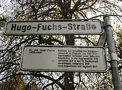 - ↑ (micm): Hugo-Fuchs-Straße – Erneut Schilder abgerissen ( vom 4. März 2019 im Internet Archive). In: Freie Presse. 4. März 2019, abgerufen am 5. April 2020.