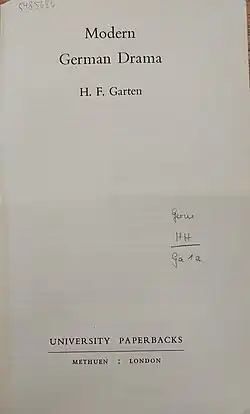 - Modern German Drama. Methuen, London 1959 (als H. F. Garten).