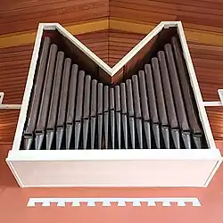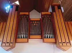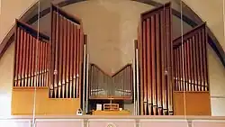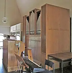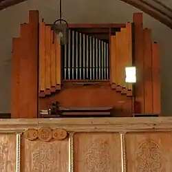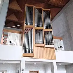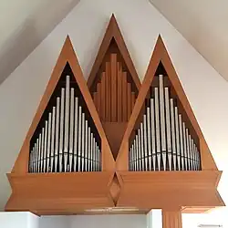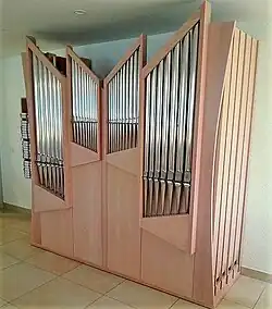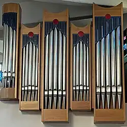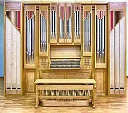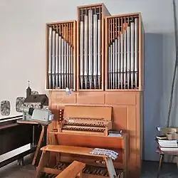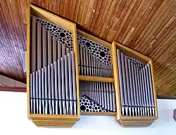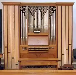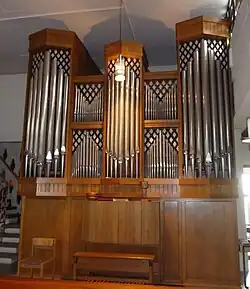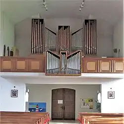 III/P | 6 | Baugleich mit vorangehender Orgel, einziger Unterschied: Subbass 16' im Pedal und Metallpfeifen im Prospekt. |