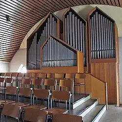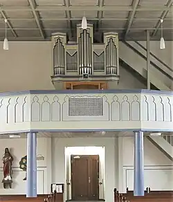 III/P | 6 | Baugleich mit nachfolgender Orgel, einziger Unterschied: Rankett 16' im Pedal und Holzpfeifen im Prospekt. |