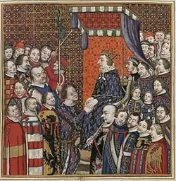 1368 gehörte er zu den Zeugen, die das Abkommen zwischen dem französischen König Karl V. und dem Grafen von Armagnac gegen Edward of Woodstock, der seit dem Vertrag von Brétigny 1360 Fürst von Aquitanien war, unterzeichneten. Im Dezember desselben Jahres hatte er bei der Taufe des Thronfolgers, des späteren Karl VI. die Ehre, eine Kerze zu tragen.