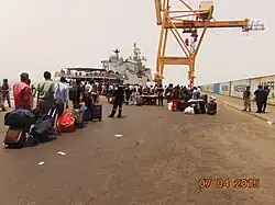 Bis April 2016 stieg die Anzahl der durch den bewaffneten Konflikt im Jemen seit Beginn der Militärintervention in die Binnenflucht getriebenen Menschen nach UN-Angaben auf rund 2,8 Millionen (über 10 Prozent der Gesamtbevölkerung) an.[20][21][56] Mehr als 168.000 Menschen sind bis Ende 2015 aus Jemen nach Saudi-Arabien, Dschibuti, Somalia, Äthiopien, nach Sudan und Oman geflohen, über 23.000 ausländische Bürger wurden aus dem Jemen evakuiert.[57]