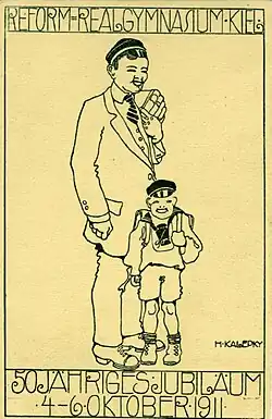 - ↑ III. Kieler Schulen unter Denkmalschutz. ( vom 11. Dezember 2012 im Internet Archive) In: Kieler Schulinformation. 39. Ausgabe, 2011/12, S. 38, herausgegeben von der Landeshauptstadt Kiel, Amt für Schule, Kinder- und Jugendeinrichtungen. PDF-Datei, 7,22 MB; abgerufen am 24. September 2012.