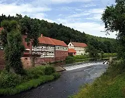 ![]() Lage der abgegangen Hunburg gegenüber der Hainmühle | |