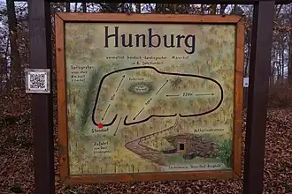 - ↑ Andreas Hüser, Heiko Kräling, Andreas Nebe, Kirsten J. Stötzel: Neue Untersuchungen zur Innenbebauung der Hunburg bei Buchholz. In: hessenARCHÄOLOGIE 2001, Denkmalpflege des Landes Hessen (Hrsg.), Konrad Theiss Verlag, Stuttgart 2002, ISBN 3-8062-1749-1. S. 129 f.