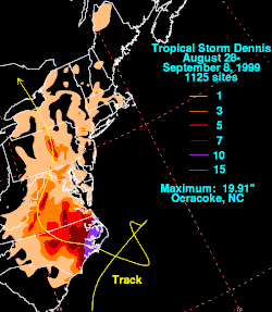 Hurrikan Dennis war während der atlantischen Hurrikansaison 1999 ein Hurrikan in der Kategorie 2, der zwar als Hurrikan nicht das Festland erreichte, aber auf seinem herumirrenden Kurs entlang der Küste von North Carolina Winde in Hurrikanstärke verursachte. Diese waren für Küstenerosion, 157 Millionen US-Dollar Schäden und 4 Tote verantwortlich. Die Starkregenfälle, die Dennis begleiteten, bereiteten das Feld für die zerstörerischen Fluten durch Hurrikan Floyd etwa zwei Wochen später.