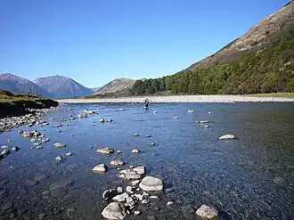 Der Fluss hat Stromschnellen der Schwierigkeitsstufen II und III für Wildwasserkajak.[7] Das beste Wildwasser befindet sich stromab des Zusammenflusses des Nord- und Südarmes in Maori Gully und der Harwarden Gorge.[8]