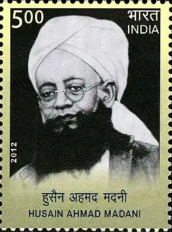 Husain Ahmad Madani (geboren 6. Oktober 1879; gestorben 1957) war ein politischer Aktivist, islamischer Gelehrter und Unterstützer Gandhis im indischen Unabhängigkeitskampf. 1892, im Alter von 13 Jahren, trat er in die islamische Hochschule in Deoband ein und wurde in den Grundsätzen des Sufismus unterrichtet. Nach seinem Studienabschluss wanderte er mit seiner Familie nach Medina aus und unterrichtete während 18 Jahren die Prinzipien von Fiqh (Usūl al-fiqh), Hadith sowie Koranexegese. 1919 wurde er der erste Präsident der neu gegründeten Gelehrtenorganisation Jamiat Ulema-e-Hind und behielt diese Position bis zu seinem Tod 1957. Er widersetzte sich der Teilung Indiens und dem Aufbau von Pakistan. 1954 wurde er als einer der Ersten mit dem Padma Bhushan (Lotusorden) ausgezeichnet.[1]