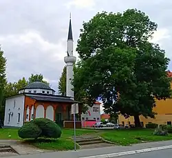 Benannt war die Moschee nach Hāfiz Husein ef. Hodžić, der Imam der ersten Moschee war. Seine Söhne waren ebenfalls einflussreiche Bürger: Hāfiz Mehmed war zeitweise Bürgermeister von Bosanski Brod, Hāfiz Husein ebenfalls Imam sowie Leiter der bis 1907 bestehenden Madrasa.[9] Der Wiederaufbau wurde mit der Eröffnung am 27. November 2004 abgeschlossen.[10] Im Jahr 2020 wurde eine Sanierung beschlossen.[11]