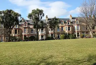 Das Lager bestand aus 33 Häusern um den Hutchinson Square nahe dem Broadway in Douglas auf der Isle of Man. Wegen starker Überbelegung mussten die Internierten sich die Betten teilen.[1] Eines dieser Häuser, Arrandale, wurde die Krankenstation des Lagers.[2]
