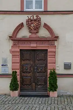 Das Huttenschloss wurde 1711 von Amtmann Adam Christian Stern auf dem Grund eines ehemaligen Gutes der Voit von Rieneck errichtet, das dieser bis 1717 besaß. Seit 1726 war das Schloss in Händen des Würzburgischen Oberamtmannes von Gerolzhofen Franz–Ludwig von Hutten zu Stolzenberg.[1] In diesem Jahr kam es durch Tausch an Fürstbischof Christoph Franz von Hutten.[1] Über dem Portal im nördlichen Haupteingang befindet sich dessen Wappen und die Jahreszahl der Errichtung.