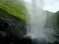 Im Gebiet gibt es im Winter starken Schneefall, aber aufgrund des reichlich vorhandenen unterirdischen Wassers hört der Zufluss auch mitten im Winter nicht auf. Im Winter gefrieren die Tröpfchen des Wasserfalls, die auf das Becken gefallen sind, und bilden einen riesigen Eiskrug mit einem Durchmesser von 10 m und einer Höhe von 40 m.