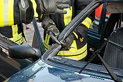 Rettungsschere beim Zertrennen der C-Säule eines Volvo S60