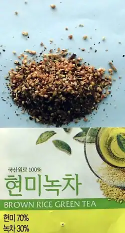 Eine Variante ist der mit grünem Tee versetzte Hyeonmi nokcha (kor. 현미녹차, Hanja 玄米緑茶, nokcha = „grüner Tee“). Dieser entspricht dem japanischen Genmaicha und dem vietnamesischen nước gạo lức rang.[3] Er ist im Handel auch in Form von Teebeuteln erhältlich.